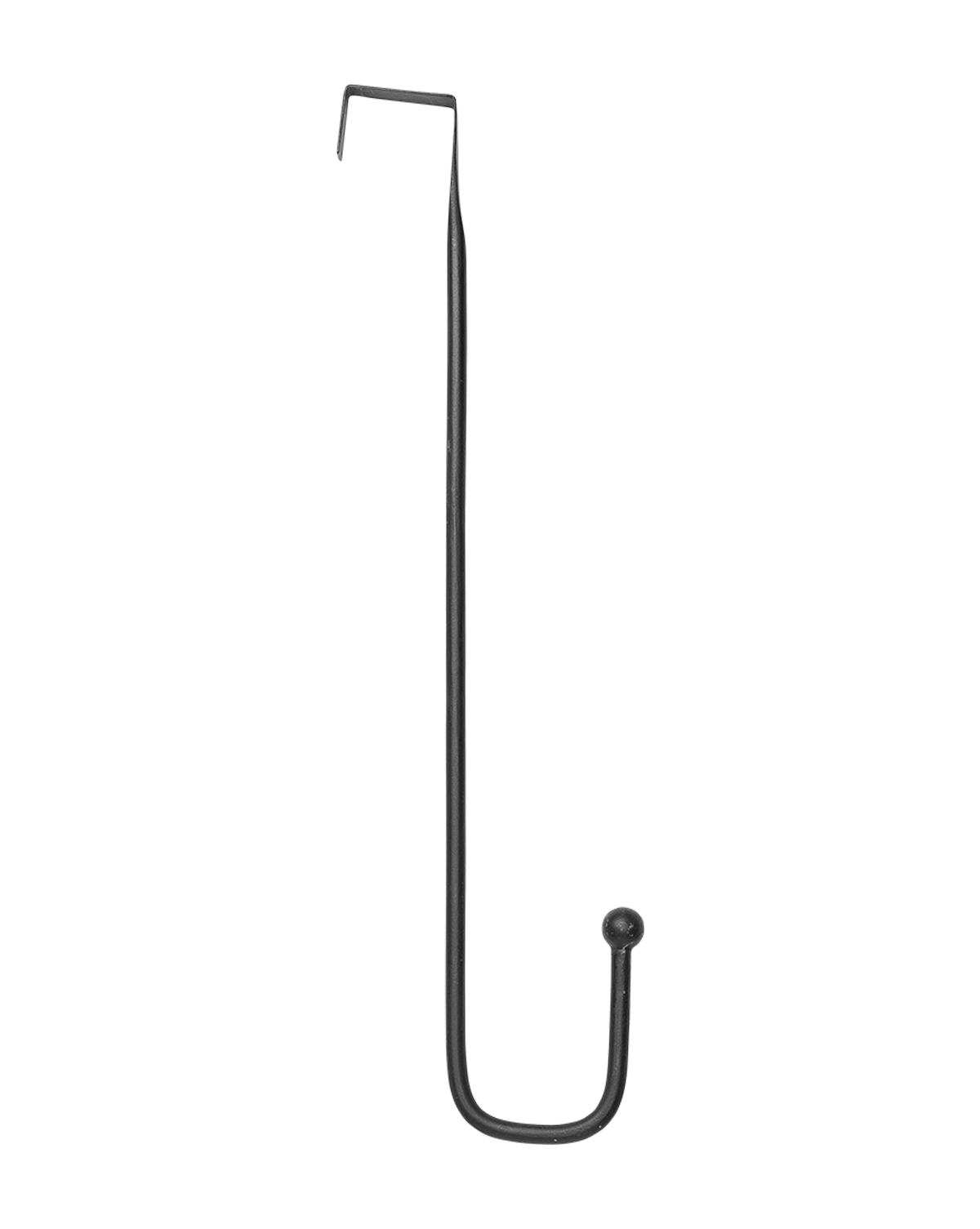 In a crisp black hue, this iron wreath hanger is simplistic and modern. Hanging any wreath, real or faux, for any season, this wreath hanger is a year-round staple.